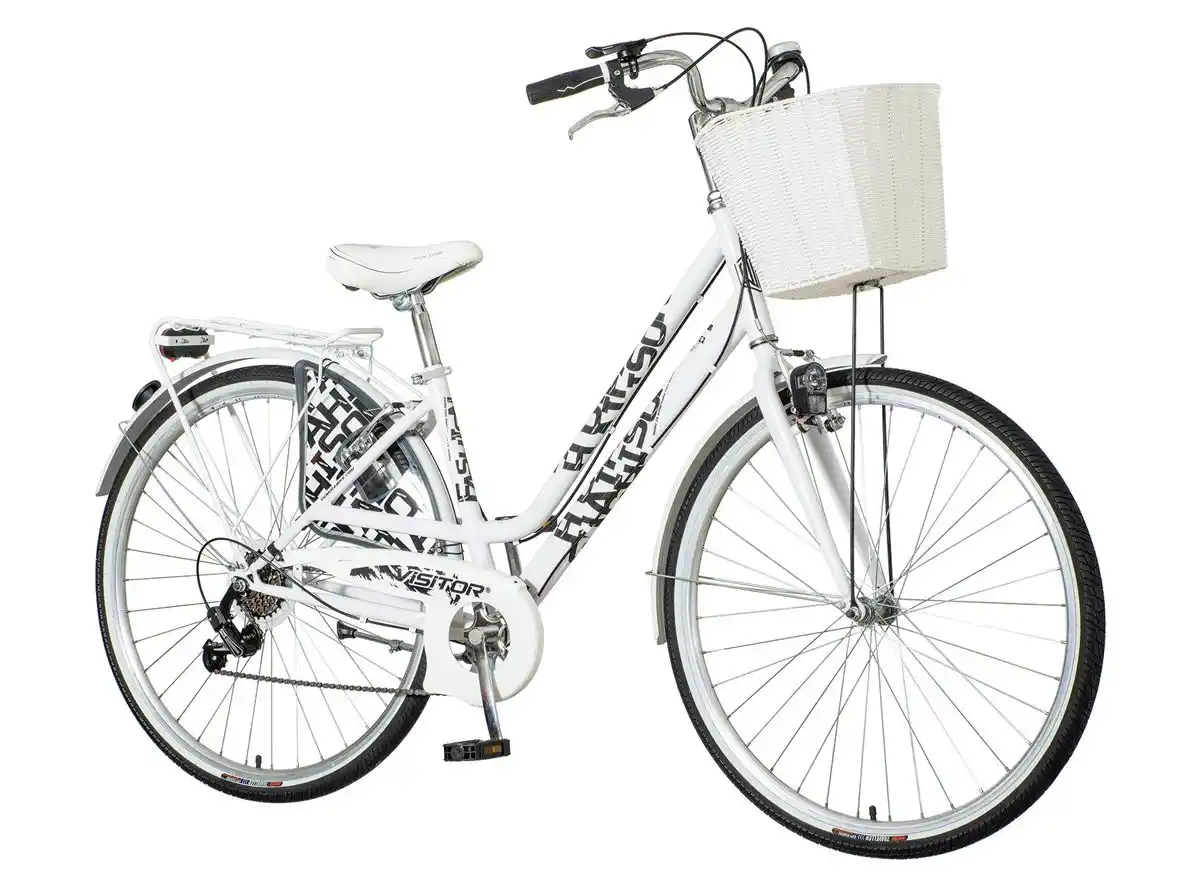 | Opis | Vrsta: Fashion Boja: Crna, Bela Materijal: Čelik Pol: Ženski bicikli Tip kočnice: V-brake Dimenzija točka: 28 inch Broj brzina: 6 Veličina rama: 17 inch Unutrašnja visina noge: 69-84 cm Visina vozača: 155-178cm (s/m) brend: Visitor |