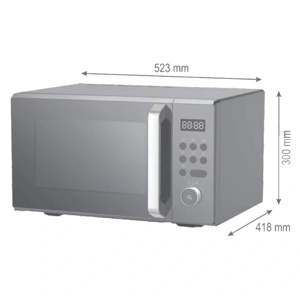 Mikrotalasna rerna sa zapreminom od 32 litra i snagom od 1000 W idealan je izbor za brzu i efikasnu pripremu hrane Stakleni okretni tanjir prečnika 315 mm u rerni ravnomerno raspoređuje toplotu Unutrašnjost je obojena u sivo i poseduje belo LED osvetljenje koje kuhinji daje elegantan izgled Sa svojom digitalnom kontrolom, lako možete birati između 8 automatskih programa, tako da se svako jelo kuva do savršenstva Bilo da se odmrzava po težini ili vremenu, ili čak kuvanju u više faza, ova mikrotalasna pećnica ispunjava sva očekivanja Sa tajmerom od 95 minuta možete precizno kontrolisati vreme pripreme hrane, dok funkcija zaključavanja za decu garantuje sigurnost čak i za mališane
