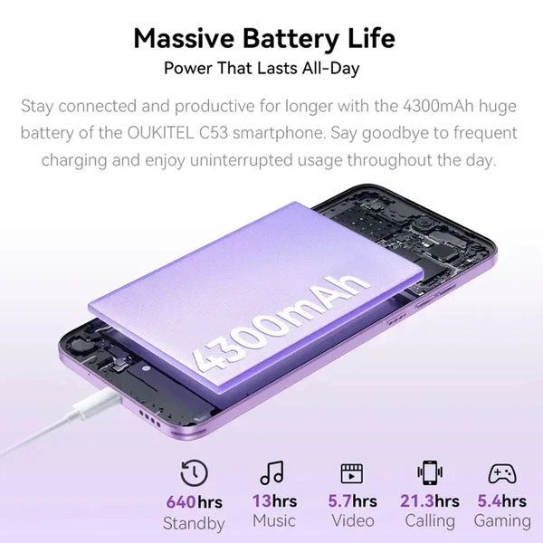 Oukitel C53 black Smart phone4G/Octa-Core/6.6″HD/64GB/4+4GB/13M/5MP/4300mAh/Android 14